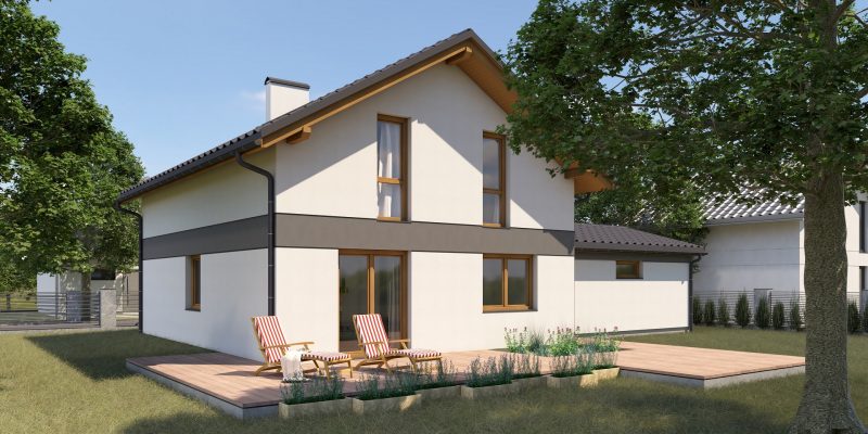 Projekt 136C Komfort to przestronny dom o powierzchni 141,74 m², stworzony z myślą o rodzinach 2+2 lub 2+3. Minimalne wymiary działki 17,96 x 22,67 m pozwalają na wygodne zagospodarowanie przestrzeni. Nowoczesna bryła budynku łączy elegancję z funkcjonalnością, oferując dobrze doświetlone wnętrza oraz ergonomiczny układ pomieszczeń. Projekt domu piętrowego uwzględnia wysoką efektywność energetyczną, co przekłada się na komfort użytkowania i niższe koszty eksploatacji. 136C Komfort to idealne rozwiązanie dla osób ceniących przestronność, nowoczesny design oraz praktyczne rozwiązania dostosowane do codziennych potrzeb.