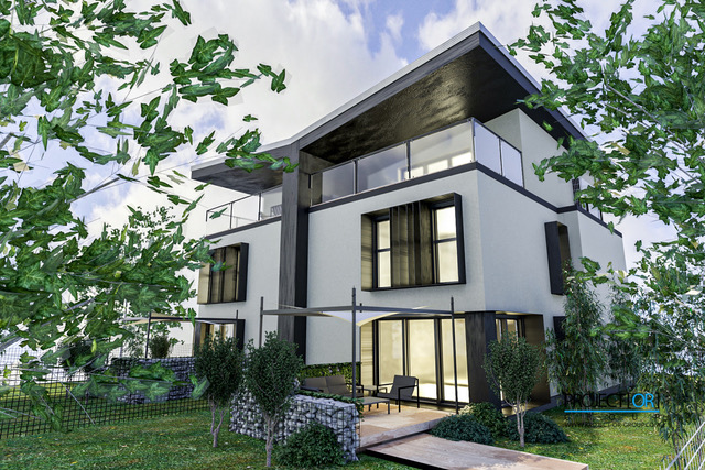 Domy wykonujemy w technologii wysoce energooszczędnej. Domy dwukondygnacyjne z antresolą na górze, skąd można delektować bliskością gór. Budynki ogrzewaniem podłogowym na wszystkich kondygnacjach i dużym tarasem na najwyższym poziomie przy antresoli. Powierzchnia budynków od 130m2 przez 150 m2 do 190 m2 powierzchni podłóg. Osiedle uzyskało już pozytywną opinię i prawomocne pozwolenie na budowę. Zatem możemy przystąpić do procesu zamówień i sprzedaży. Serdecznie zapraszamy do zapoznania się z budynkami w ofercie. Budynki przekażemy Inwestorom max 6-8 miesięcy od podpisania umowy. Budynki wykończone z zewnątrz tynkiem silikatowo-silikonowym, ze stolarką okienną trzyszybową montowaną na tzw. ciepłym montażu – wg technologii Ibudhaus wraz z elektrycznymi roletami zewnętrznymi.